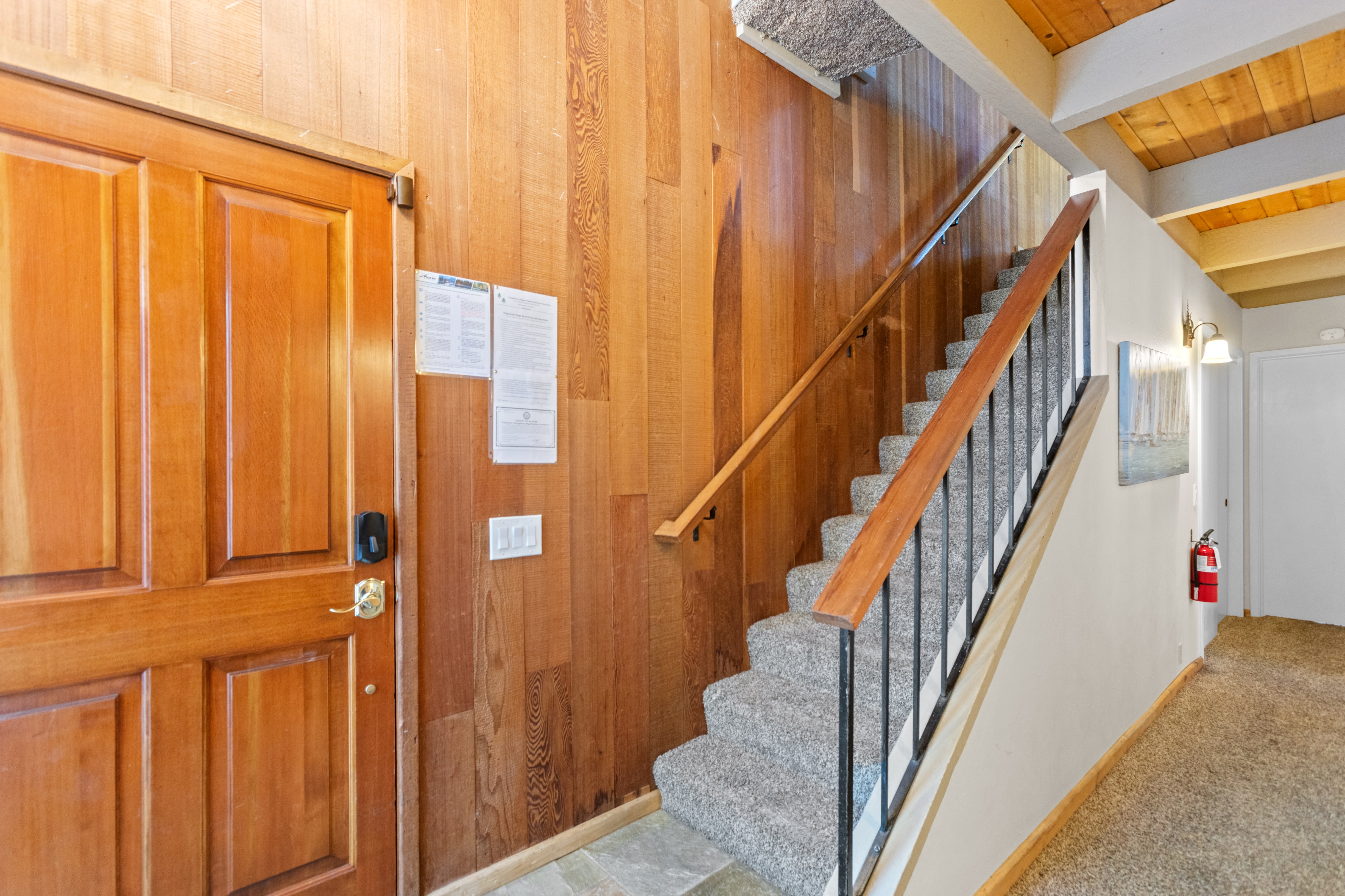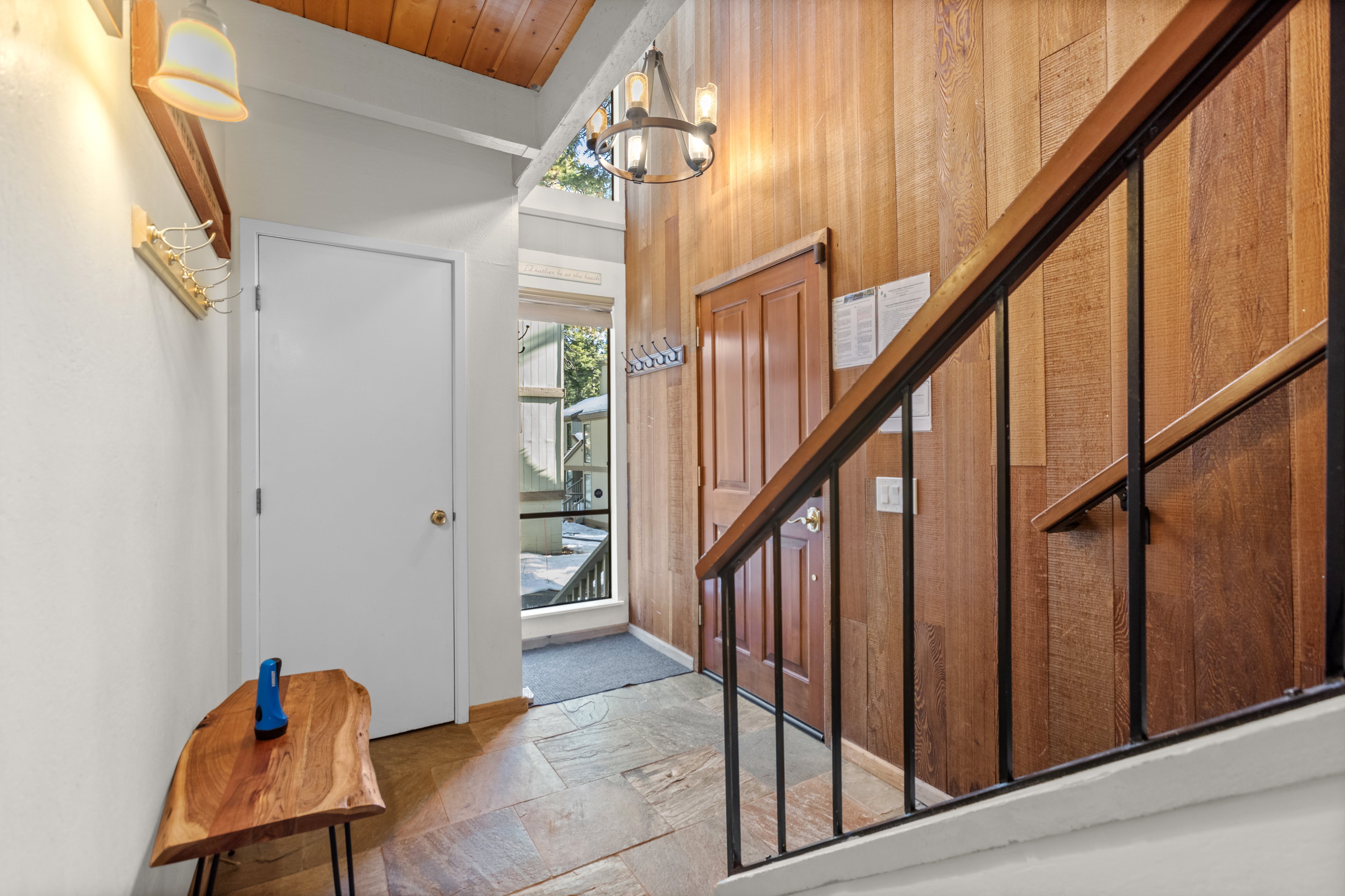 Welcoming entrance with ski storage
